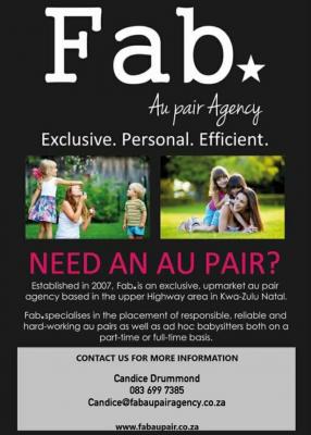 Fab Au Pair Agency is an established au pair agency which provides an efficient and personal service to families looking for au pairs throughout Durban, Kwa-Zulu Natal.